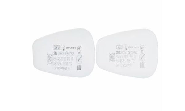 3M Particulate Filters 5935 P3 provides protection against: Particulates (P3), including those containing oil. To be fitted with the 3M 6000 Series Cartridges/Filters and the 3M 501 Retainer.