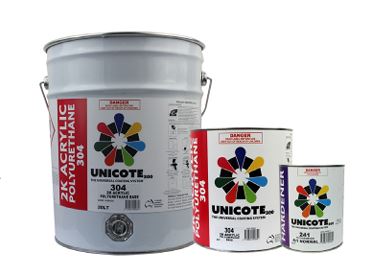 The Unicote 304 2K PU is a 2K acrylic urethane topcoat, characterised by its durability, excellent flow and gloss. It is suitable for most industrial and commercial applications.